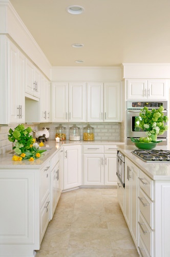 Its slightly off-white color makes it the perfect stone to pull together a kitchen with white cabinets and a dark floor.